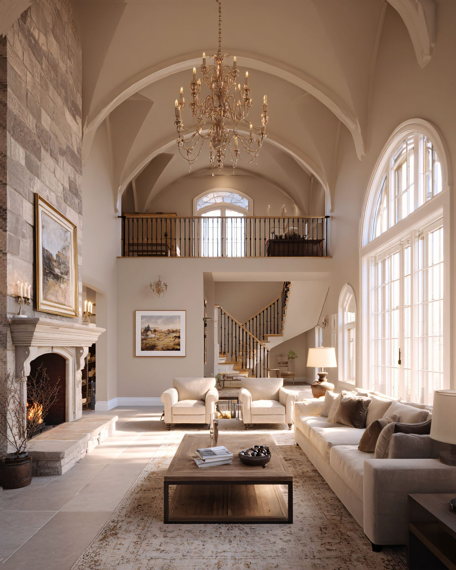 Pro Tip- Remember to account for the amount of natural light in your living room, coming from skylights, bay windows, or patio doors, and how this light bounces around from surface to surface.